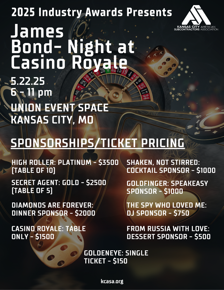 We're Celebrating 35 Years! Join KCASA as we celebrate the BEST of the BEST in Kansas City commercial construction - with James Bond Casino Night at Union Event Space in KC, MO!